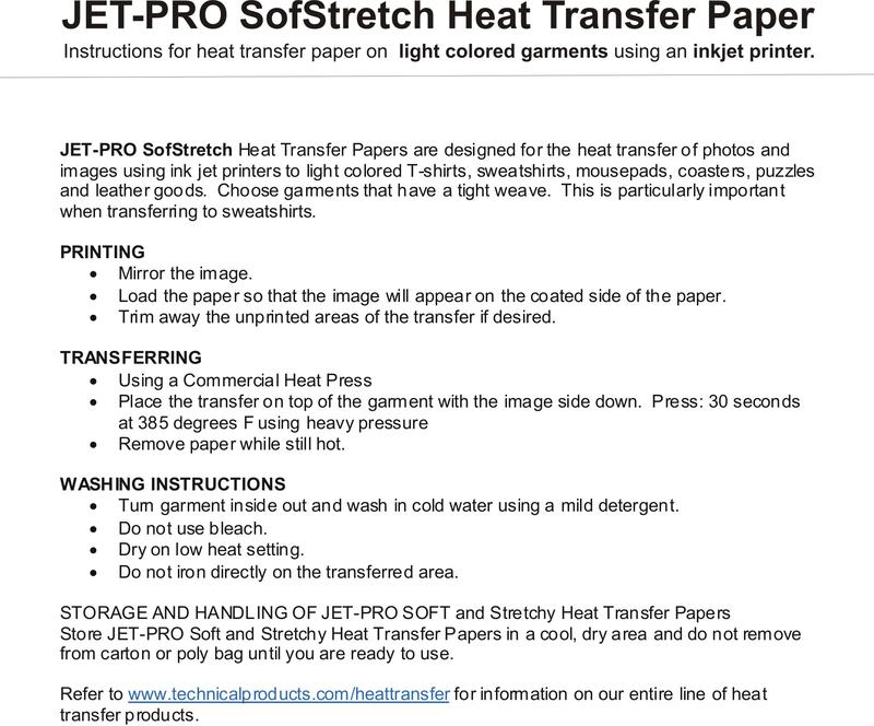 Inkjet Instructions for White Shirts