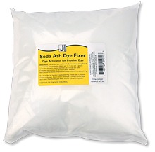 Soda Ash dye fixer is a mild alkali that promotes the chemical reaction between Procion MX fiber reactive dyes and cellulose fiber. It is also known as sodium carbonate, washing soda or sal soda. Soda Ash is necessary to activate and set Procion MX dye. 1lbs.
