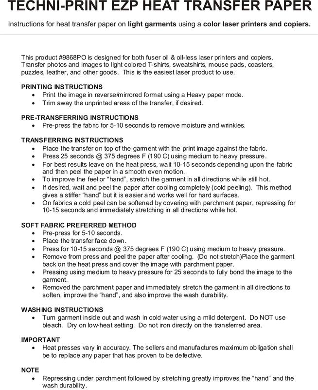 Instructions for Inkjet Color Shirts