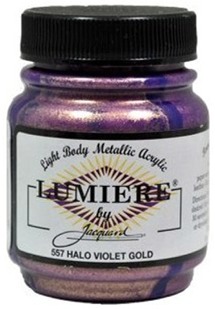 This stunning assortment of metallic and pearlescent paints brushes on like butter and is designed not to spread. They allow for smooth application on soft or flexible surfaces like fabrics and uneven textures like Styrofoam. Lumiere colors can be bright, metallic or subtle, even on dark backgrounds. Their high pigmentation provides excellent coverage.