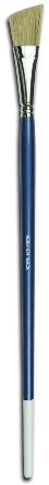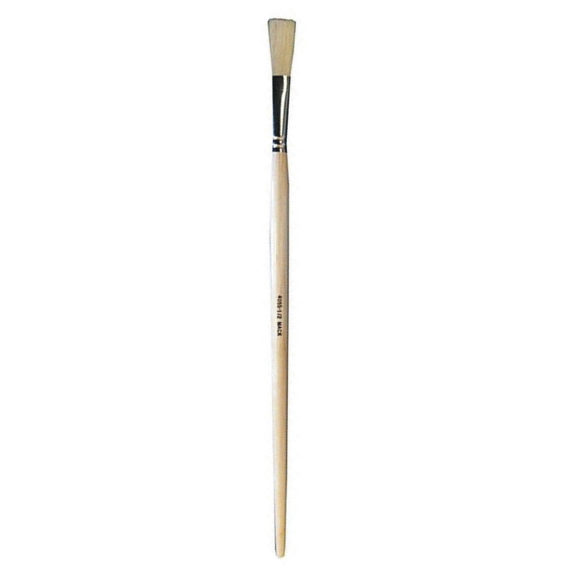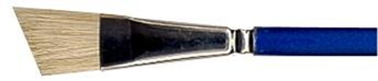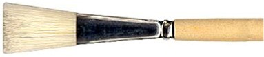 This white bristle fitch (100% pure white hog bristle) is cup chiseled to a straight edge and also has a long polished handle. This is a lettering brush, but because the bristles are long it can also be used for outlining. This brush is best suited for outdoor work such as walls, bulletins and rough surfaces.