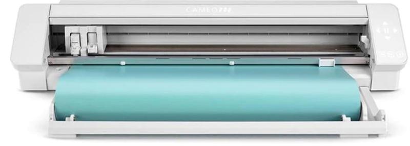 The Silhouette Cameo® Plus is a larger version of the Cameo 4 desktop cutting machine. It can accommodate material widths of up to 15 inches and lets you make precision cuts in vinyl, cardstock, fabric, and more.